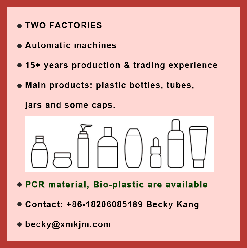 per espandere la scala aziendale, vorremmo fare un'offerta di stampaggio gratuita. Se ti piace la forma o la capacità specifica del flacone o del barattolo, ma non riesci a trovarne dal mercato esistente, abbiamo una soluzione personalizzando uno stampo, che è gratuito quando l'ordine iniziale raggiunge i 50k pezzi e non è necessario alcun logo. non esitate a contattarci se interessati.